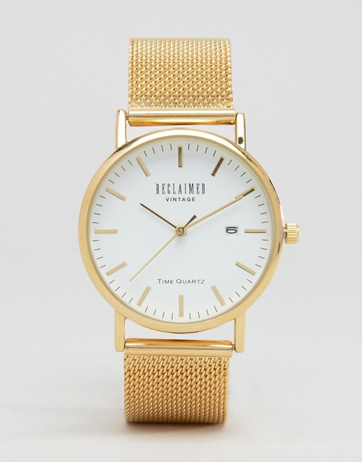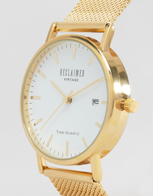 Reclaimed Vintage Inspired Mesh Strap Watch In Gold